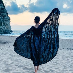 Wunderschöne hochwertige schwarze Pailletten machen es zu einem wirklich originellen, einzigartigen Festival-Kimono. Unsere „Krähe“ ist definitiv ein Stück Musikfestival-Kleidung, die Du nicht verpassen möchtest.