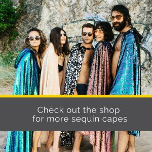 Dieses sexy Pailletten-Cape mit Kapuze ist für alle Schwarz-Liebhaber. Lasse Dich von seinem Funkeln blenden und deine Stimmung wird automatisch steigen!
