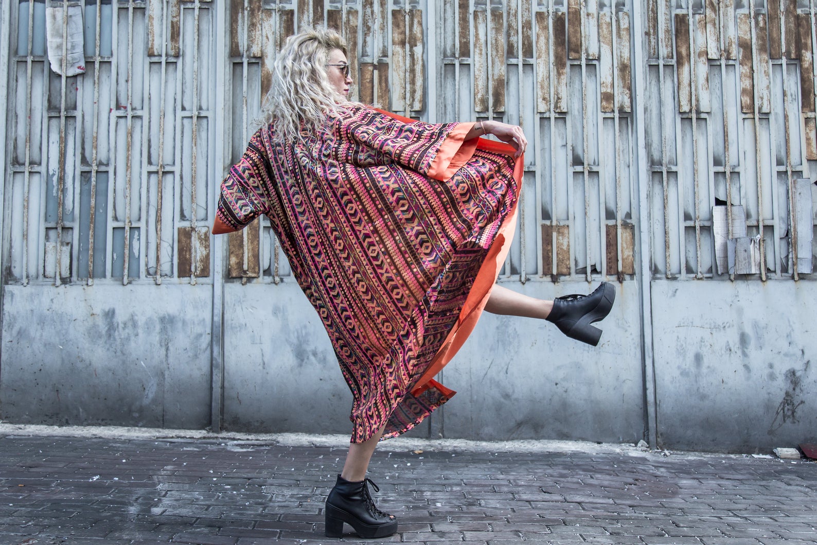 Dieser Kimono mit weiten Ärmeln ist 46 Zoll (116,84 cm) lang und passt zu allen Körpertypen.