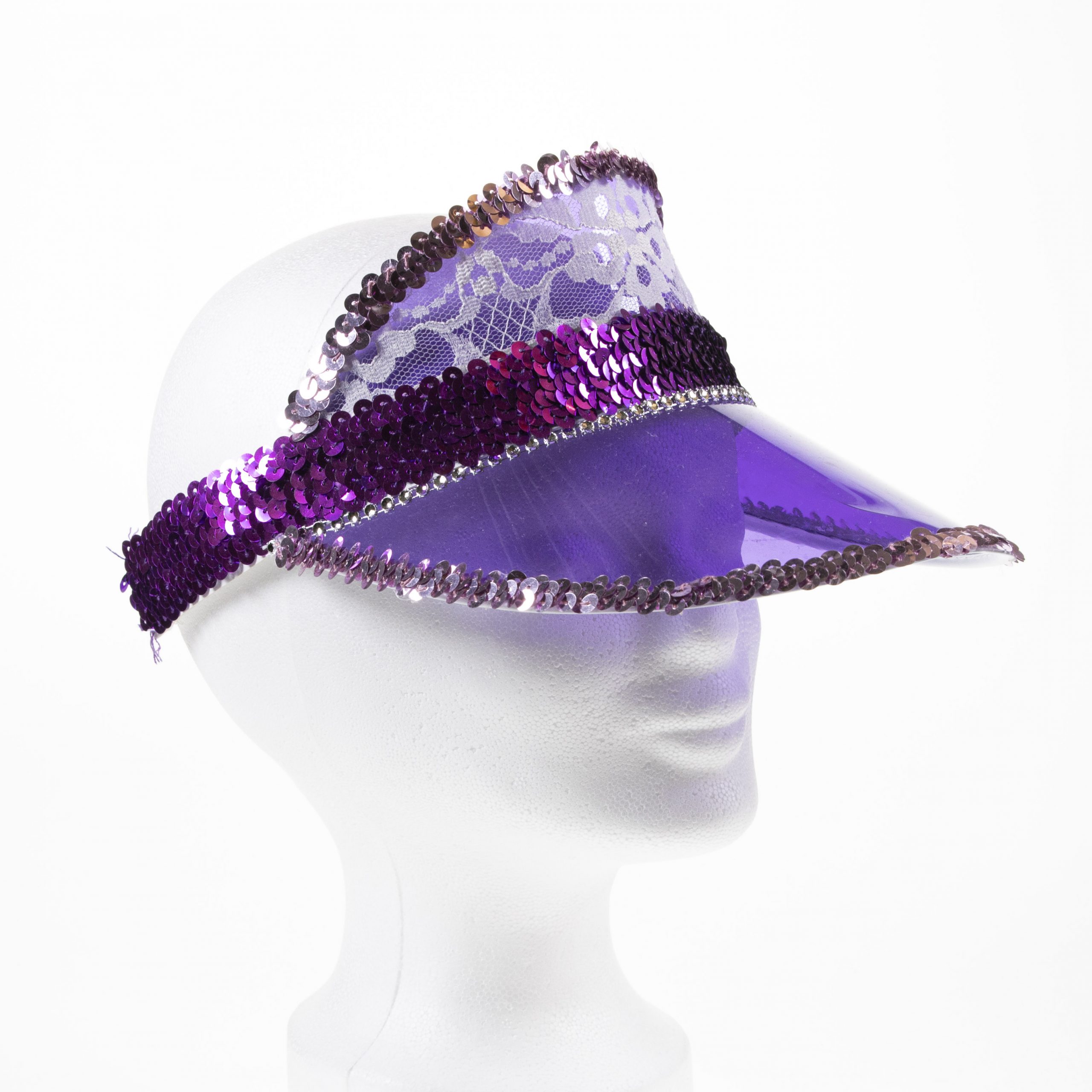 Dieses auffällig verzierte Visor Cap ist ein Must Have für alle Festival-Lover! Es schützt dich nicht nur vor der Sonne, sondern ist auch ein Accessoire mit Wow-Faktor. Die Kombination von lila Cap und weißer Spitze bietet einen tollen und auffälligen Farbkontrast. Getoppt wird das ganze von rosafarbenen und pinken Paillettenbändern als weiterer Akzent sowie einer silbernen Steinchenborte. Damit verleihst du deinem Party-Outfit zusätzlichen Glanz und vollendest deinen Look. Durch das praktische Gummiband passt es sich jeder Kopfform an und hält auch beim Feiern und den wildesten Tanzmoves ohne zu verrutschen. Egal ob beim nächsten Rave, Festival oder Clubbing Veranstaltung – mit diesem Cap bist du der Eyecatcher auf jeder Party!