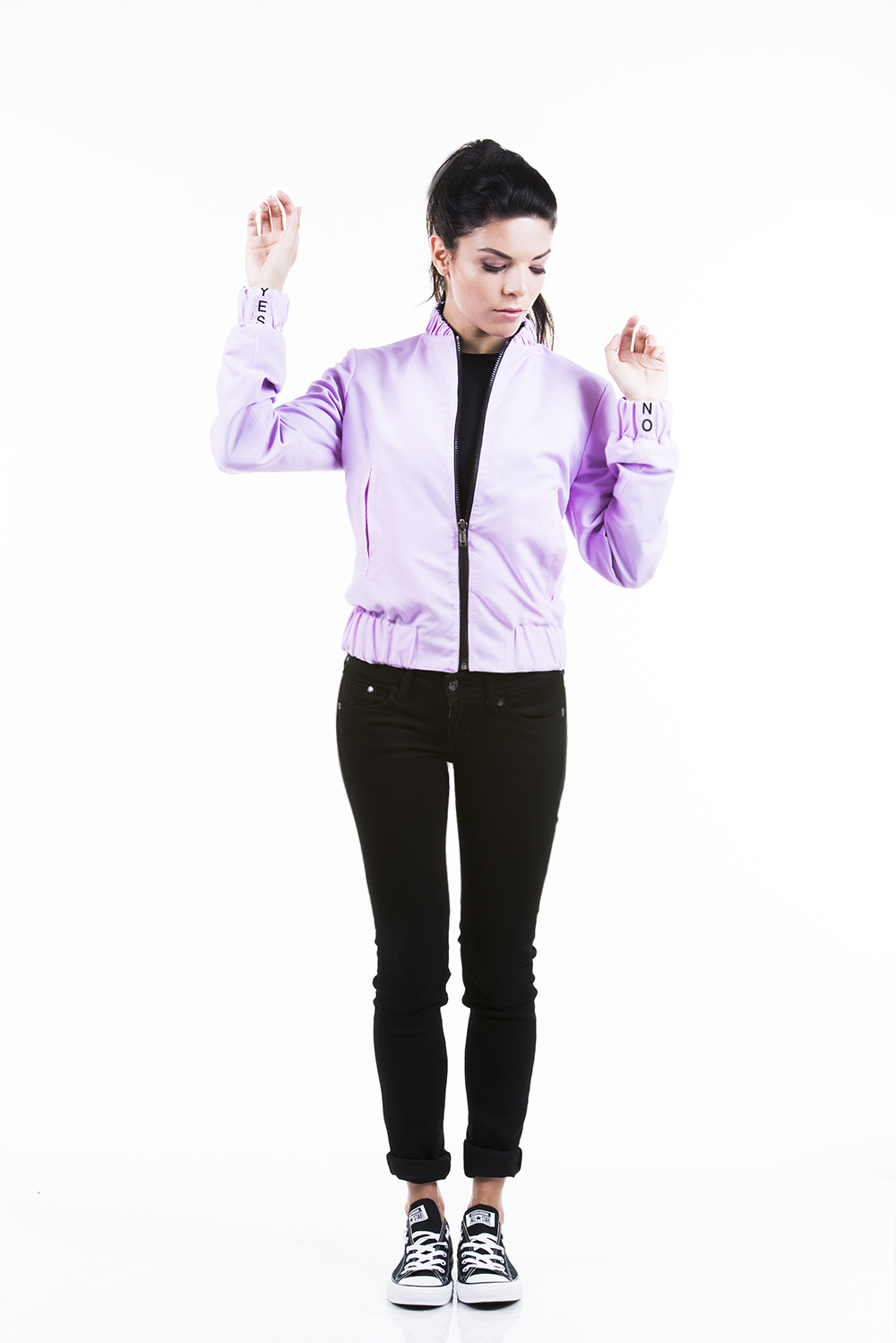 Your ultimate ‘lazy to talk’ 2in1 jacket. I’m made of a super cozy material. You can wear me on both of my sides – as I’m a reversible piece. Please choose your personal message on your wrist and let yourself communicate more easily on your lazy days.
