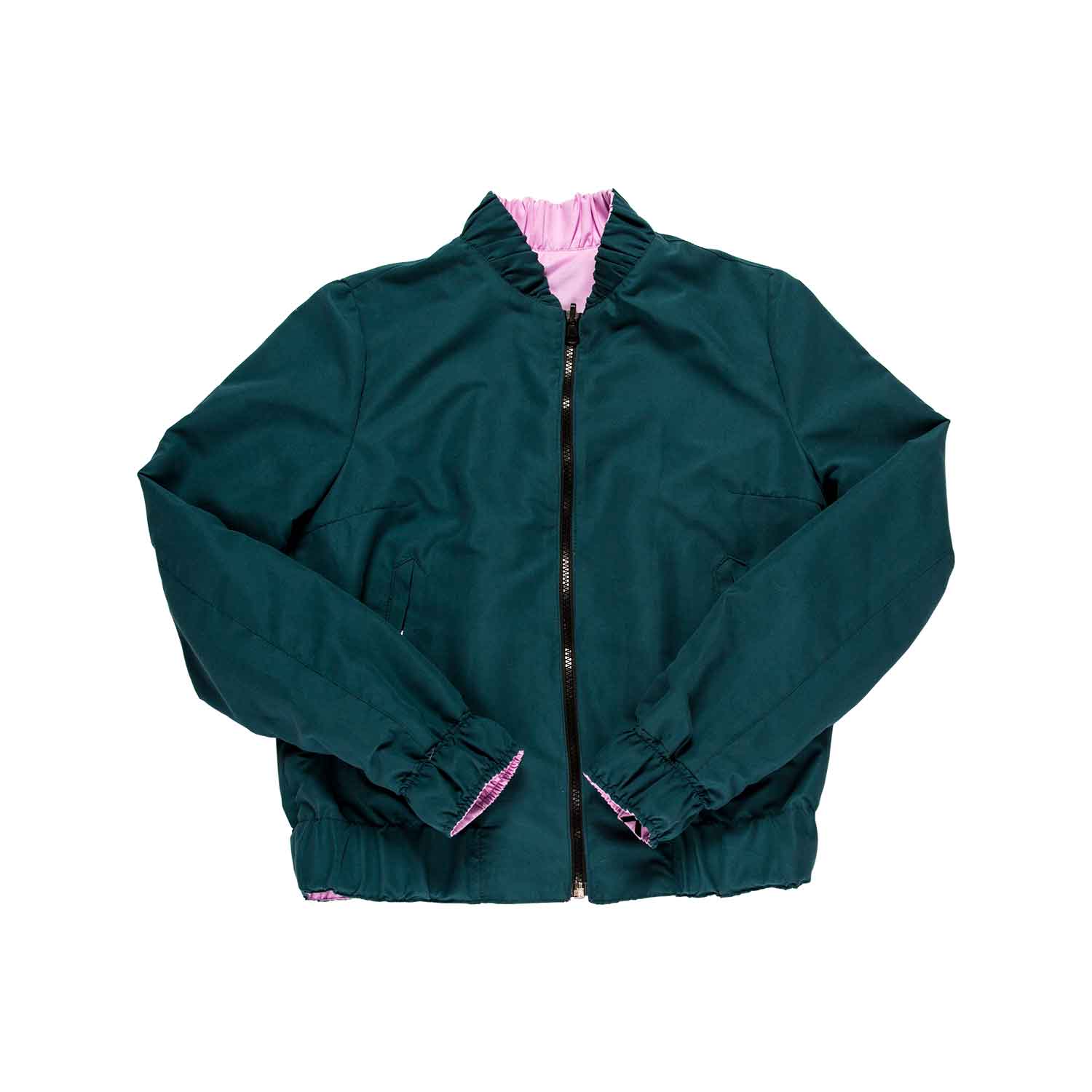 color: magenta + green – zip fastening through front – material: 100% PES