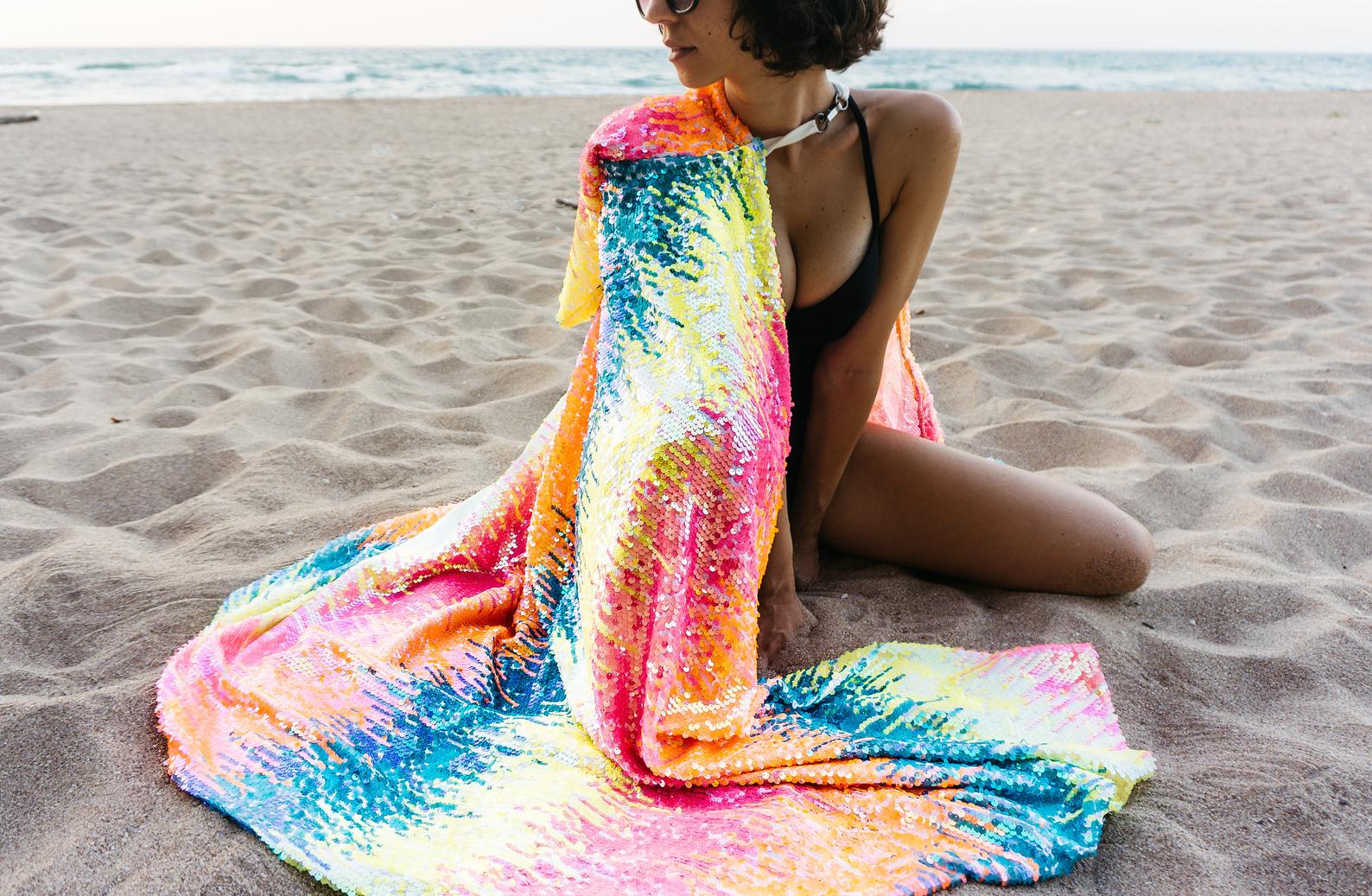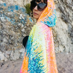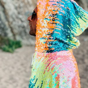 Dieses Pailletten-Cape kommt für alle farbenliebenden Festival-Fans da draußen. Lasse Dich von seinem Funkeln blenden und deine Stimmung wird automatisch steigen!
