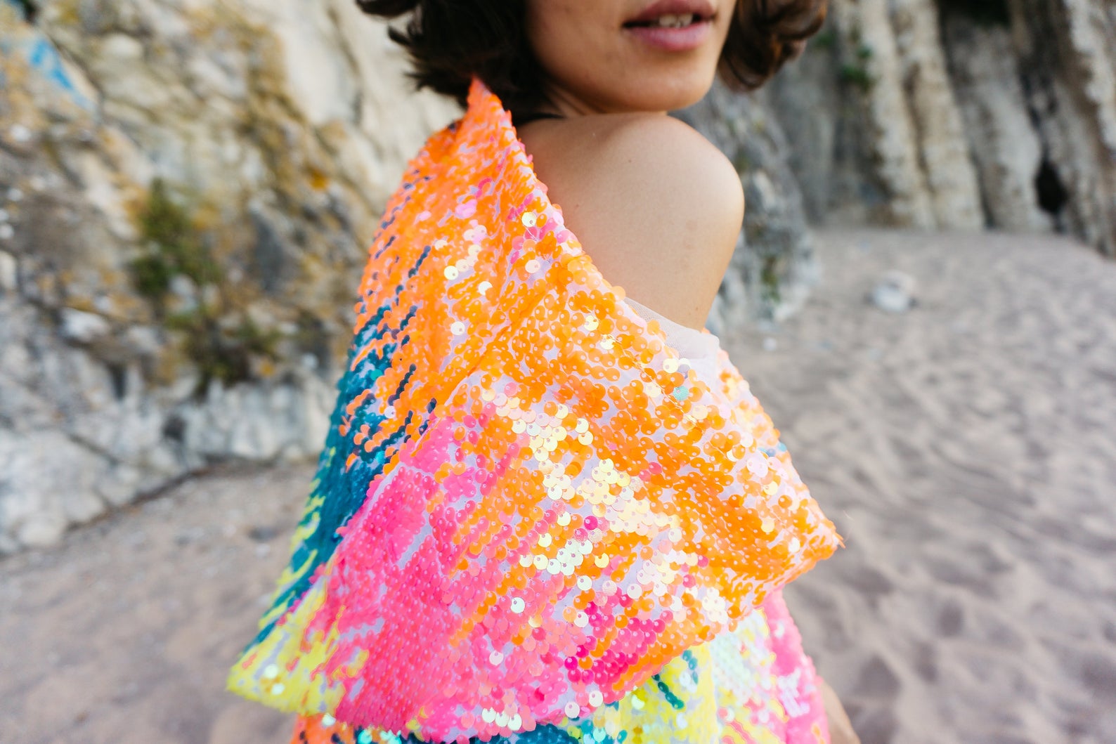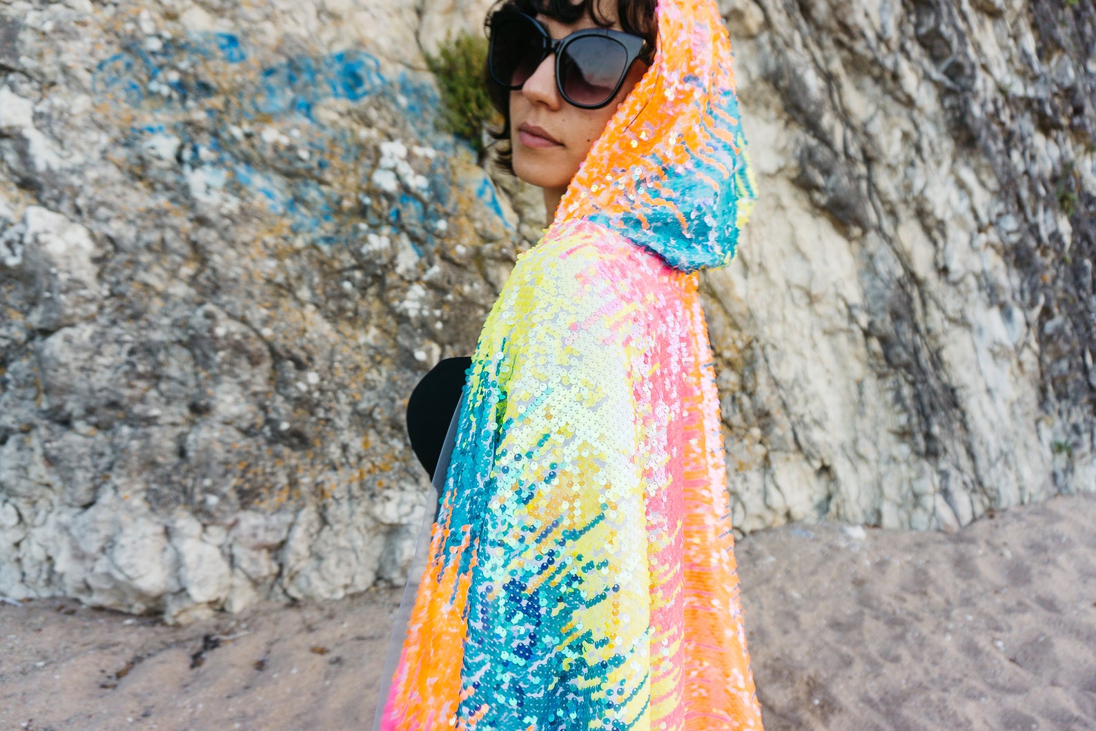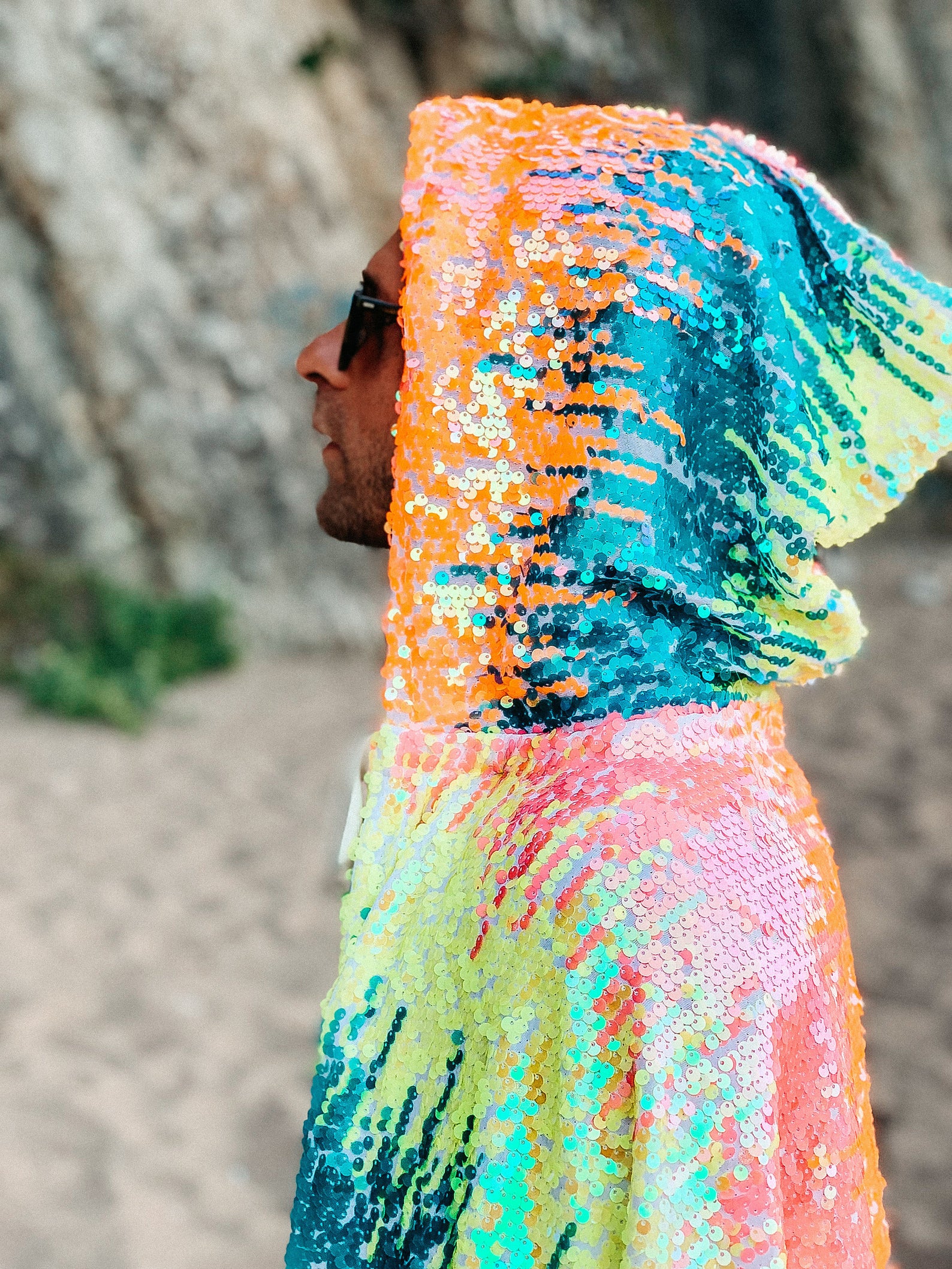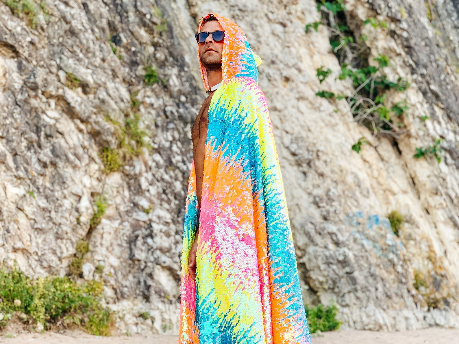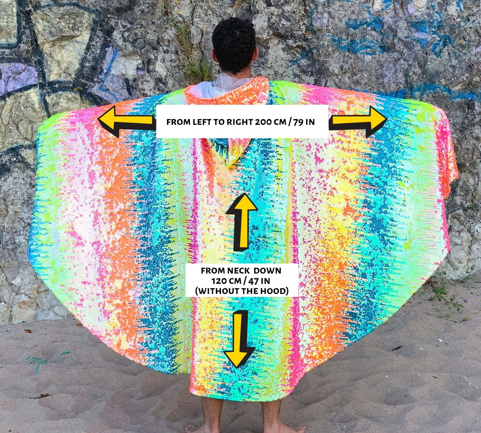 Dieses Pailletten-Cape kommt für alle farbenliebenden Festival-Fans da draußen. Lasse Dich von seinem Funkeln blenden und deine Stimmung wird automatisch steigen!