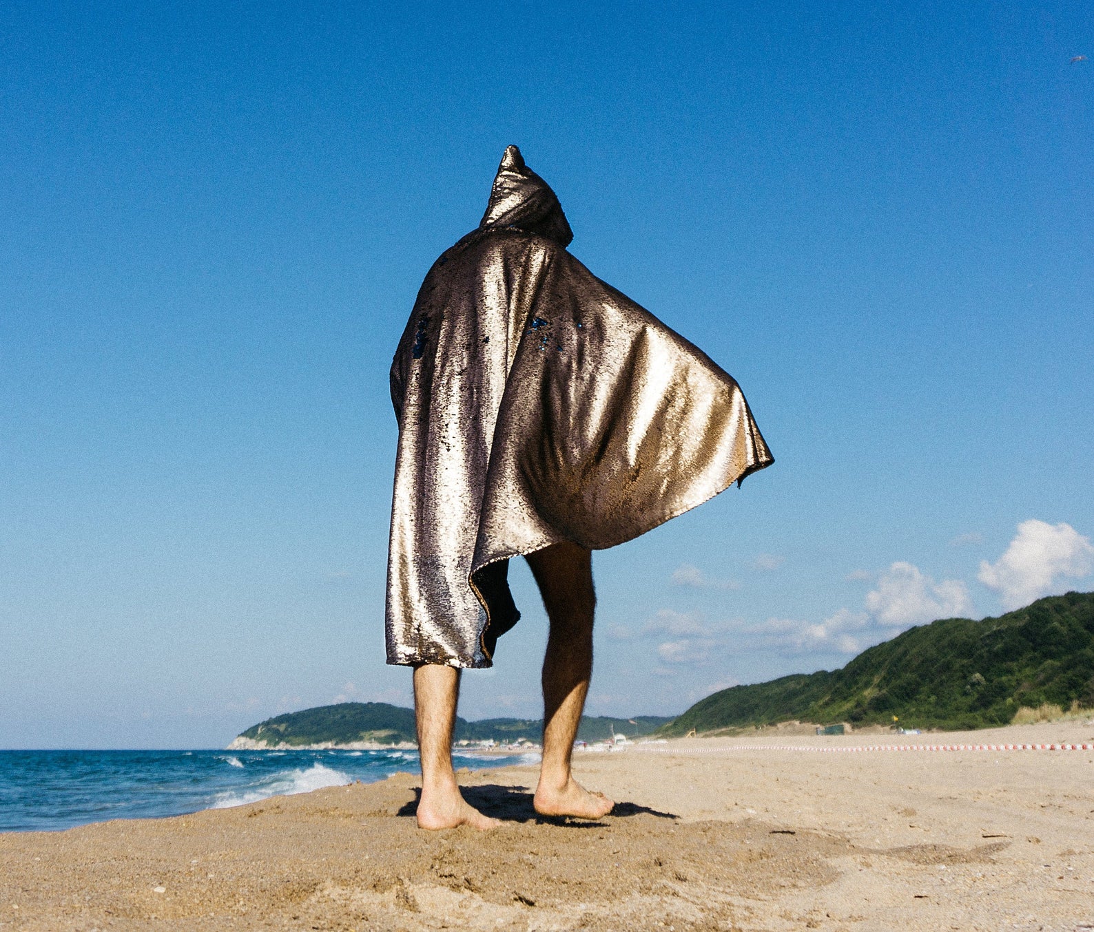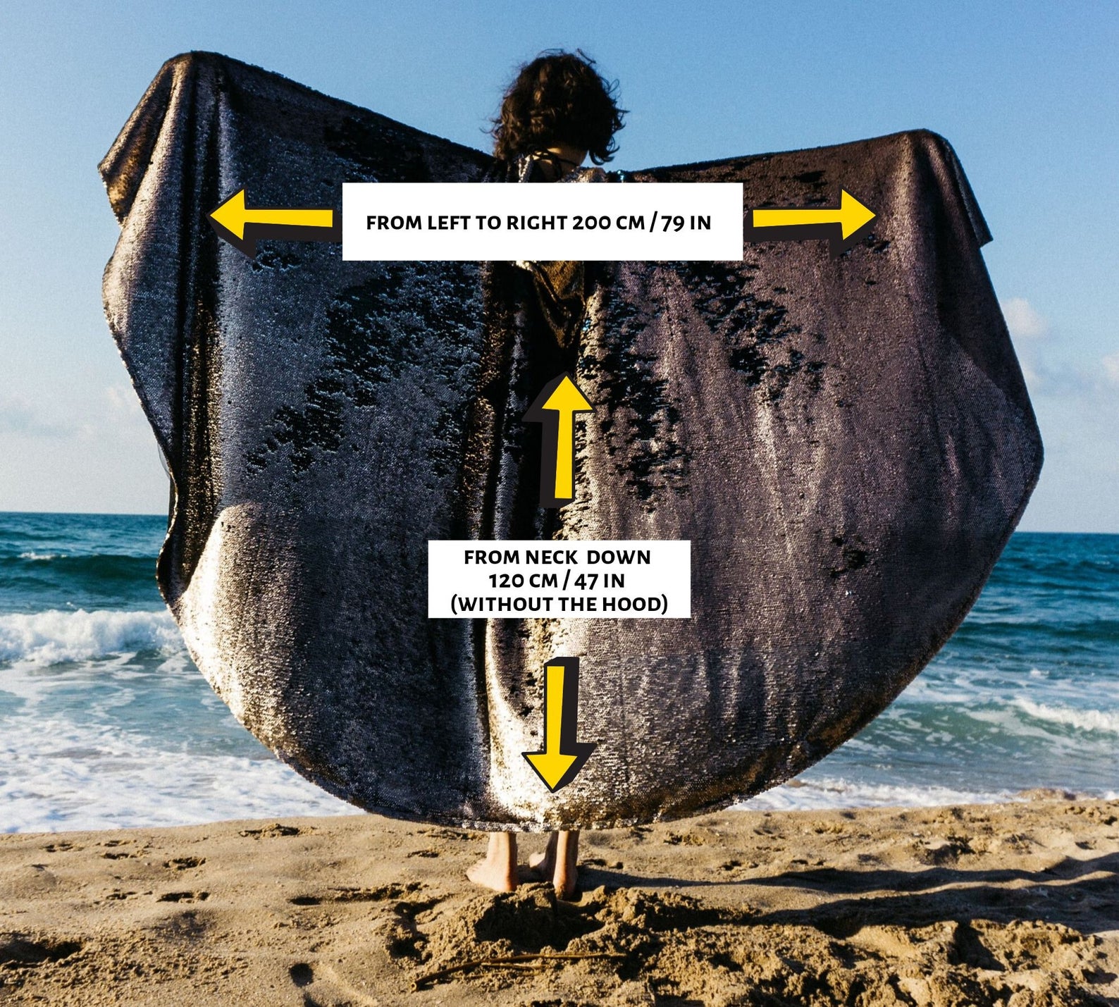 Wunderschöne Wende-Pailletten (Bronze / blau) machen dieses Cape zu einem wirklich originellen, einzigartigen Festival Kimono. Als Burning Man Mantel oder Cosplay Kostüm, ist unser Siamese Cat Cape definitiv ein Stück Rave-Outfit, das Du nicht verpassen möchtest. Streiche mit der Hand über das Cape, um die blaue Seite der Pailletten zu enthüllen.