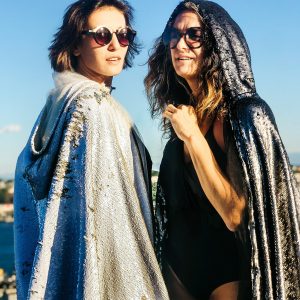 Dieses schöne Pailletten-Cape mit Kapuze kommt für alle Weiß-Liebhaber.