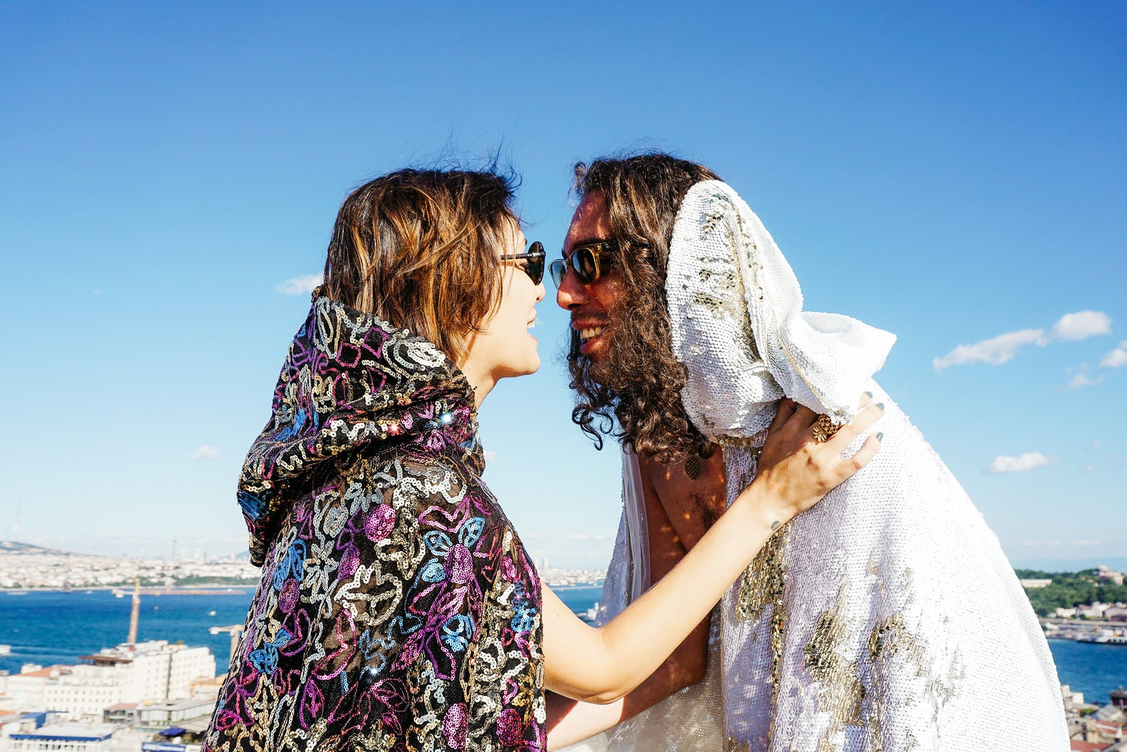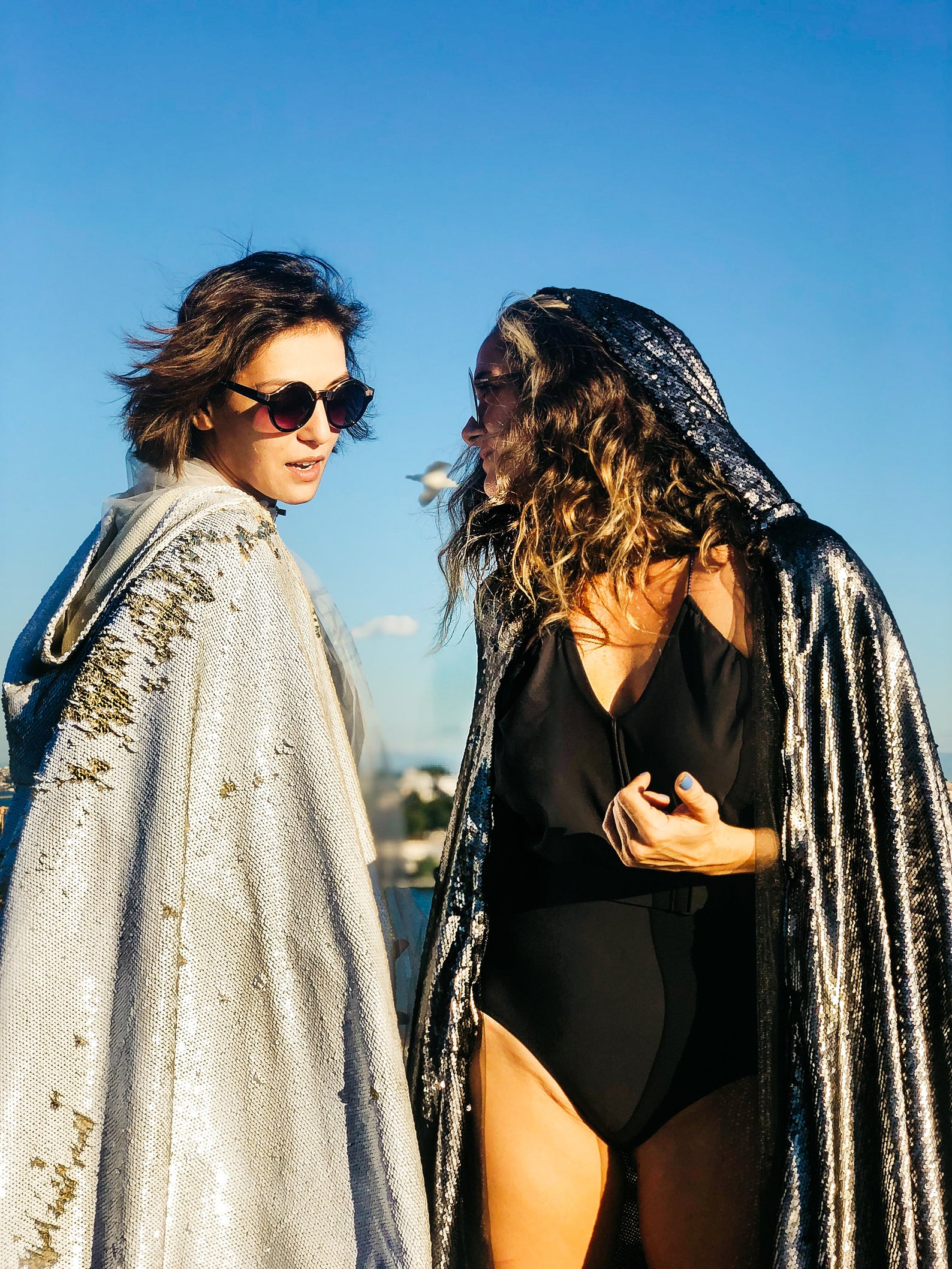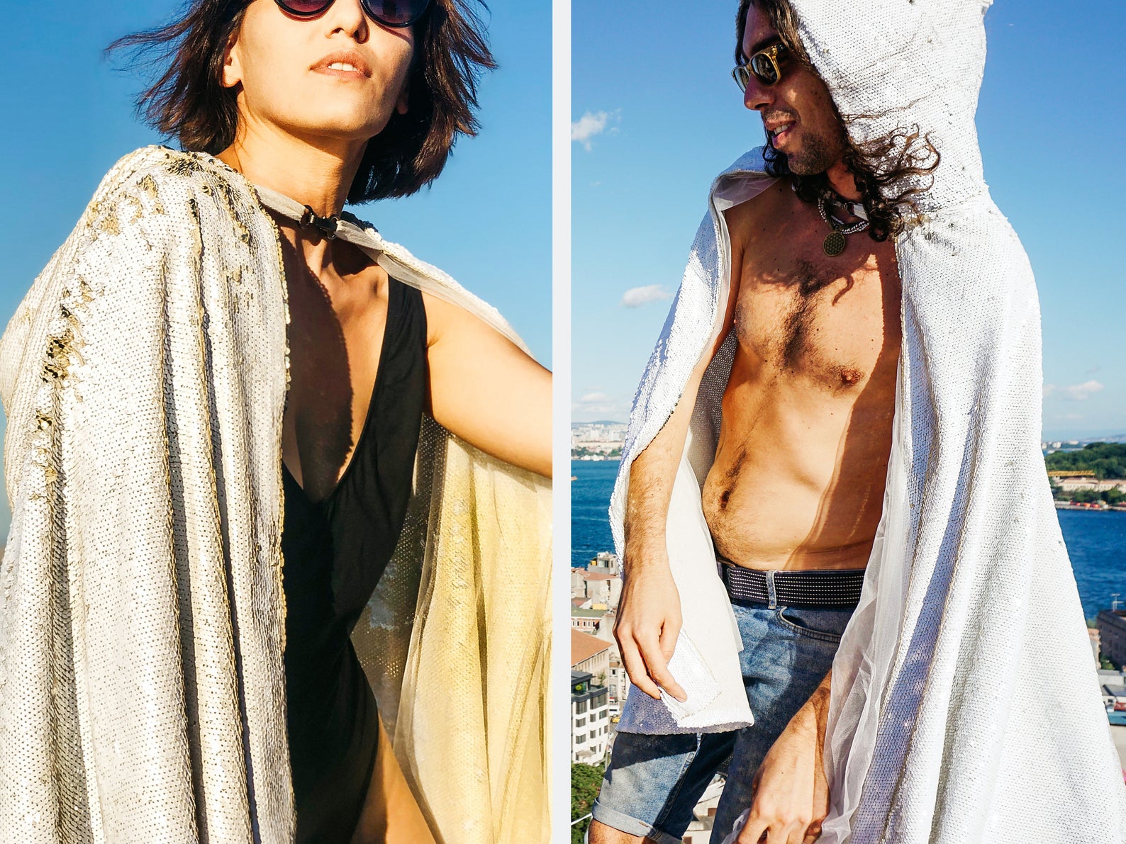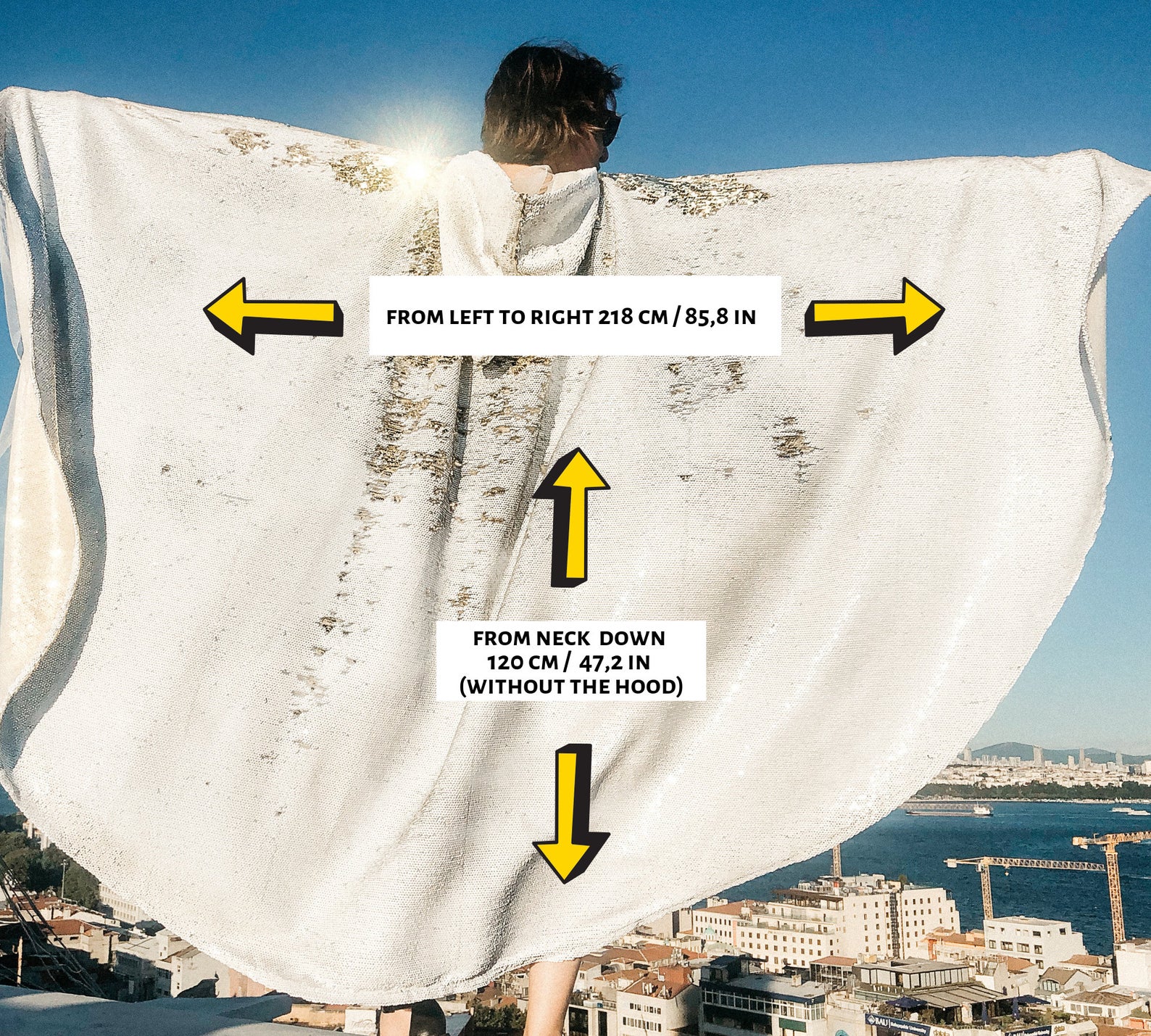 Dieses schöne Pailletten-Cape mit Kapuze kommt für alle Weiß-Liebhaber.