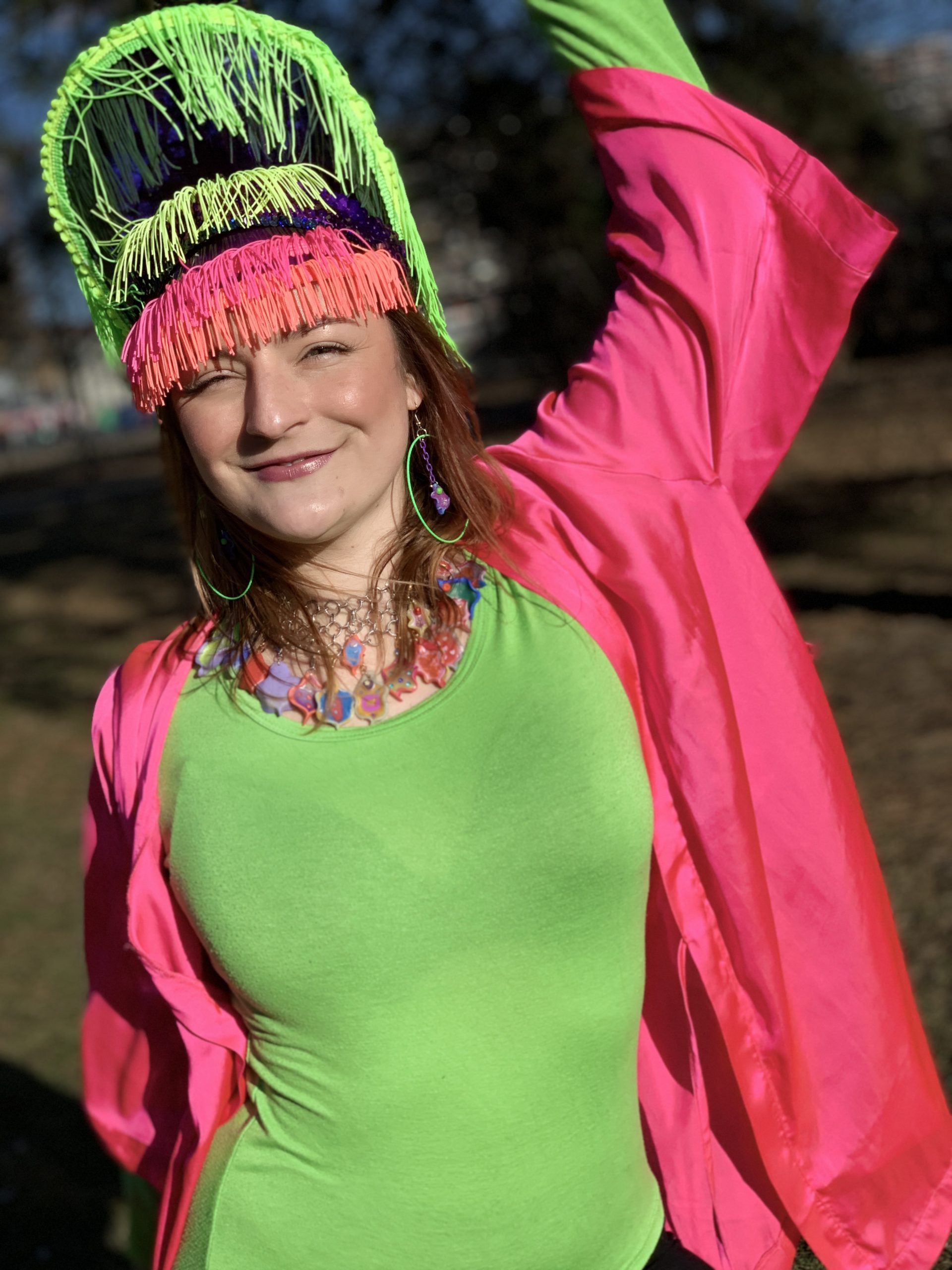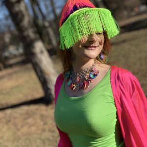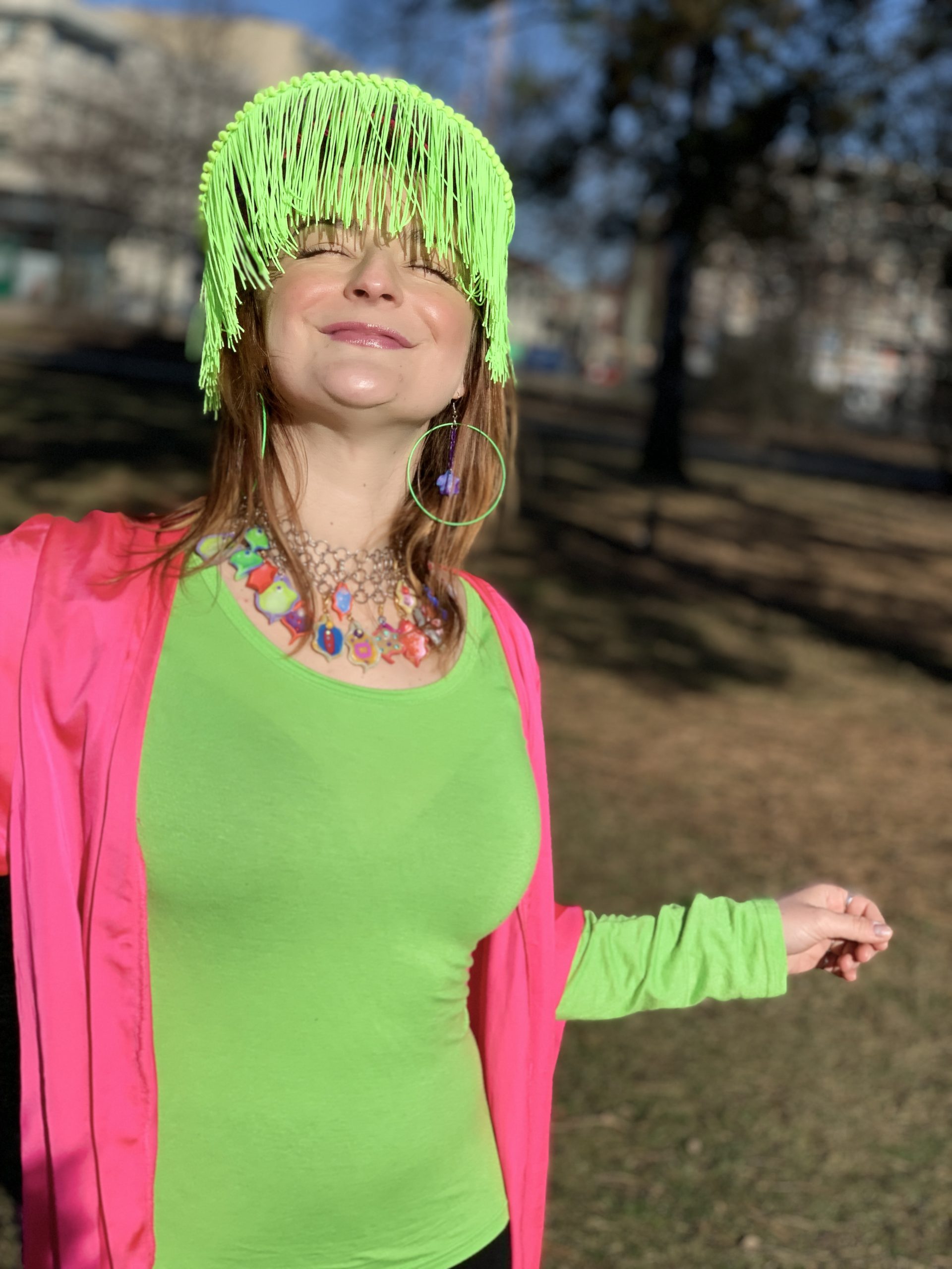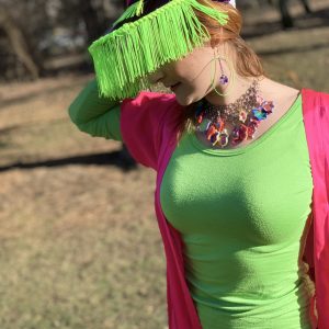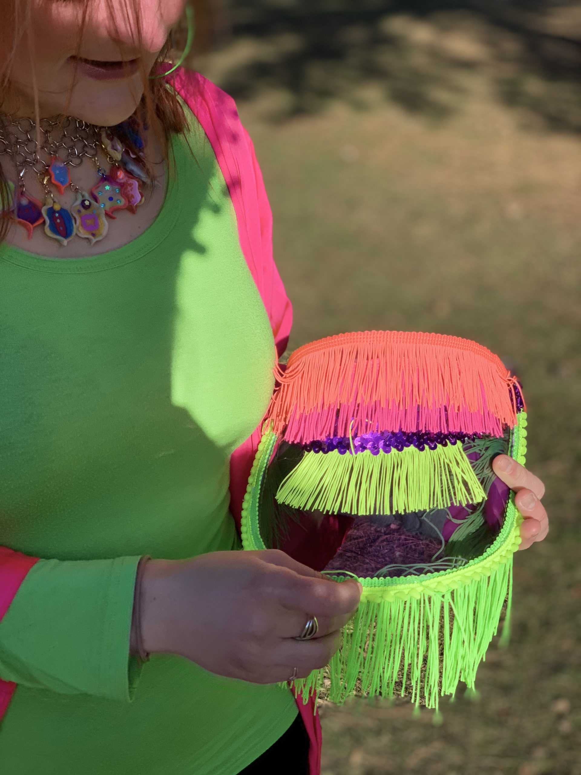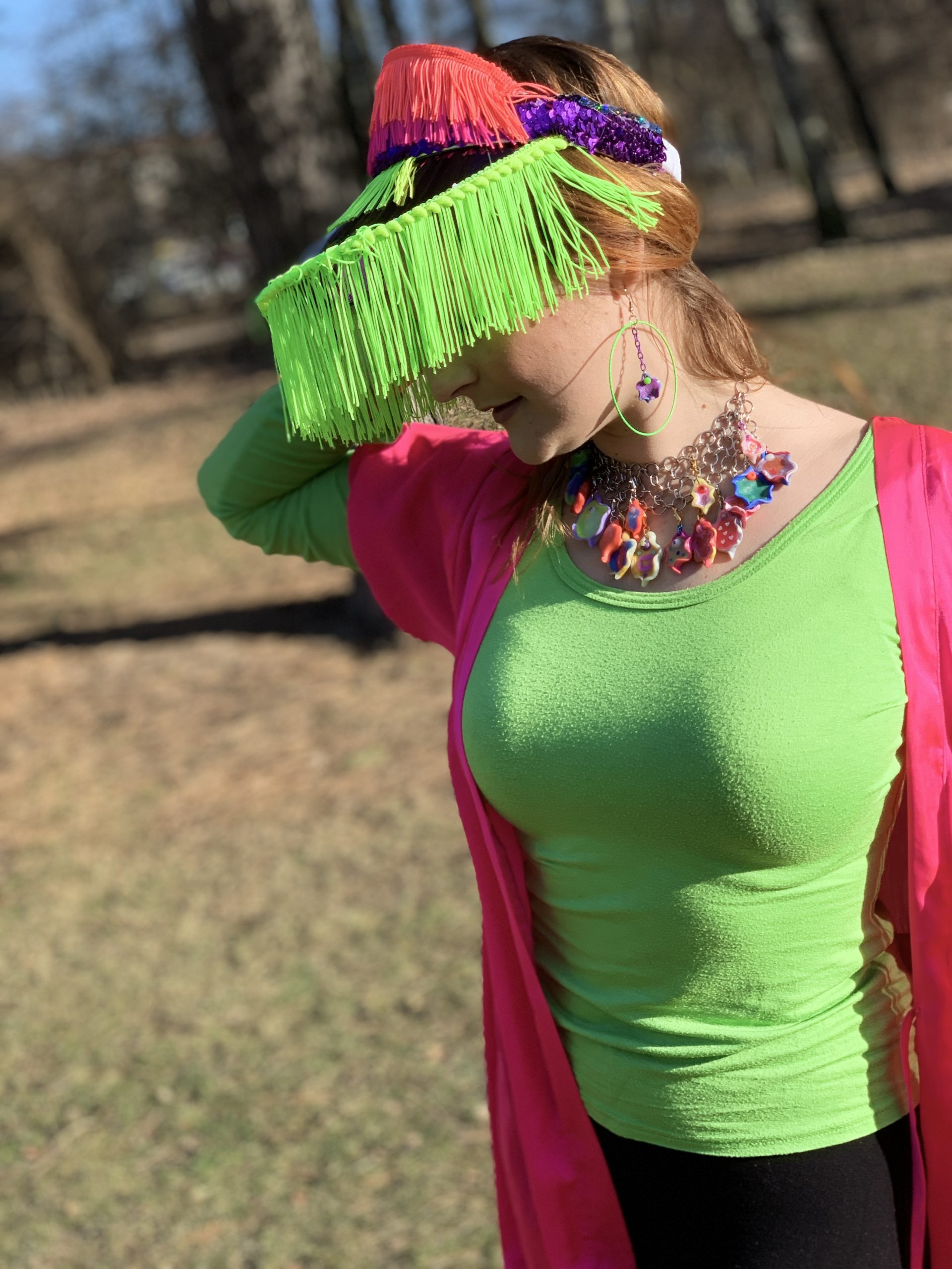This neon coloured Set consists of a beautiful pair of handmade vulva earrings by our new brand Clitlov3 and a matching purple Cap Hunter Tassel Neon Visor. It’s so much fun – and with or without darklight, you can never ever get lost again, promised 🙂
